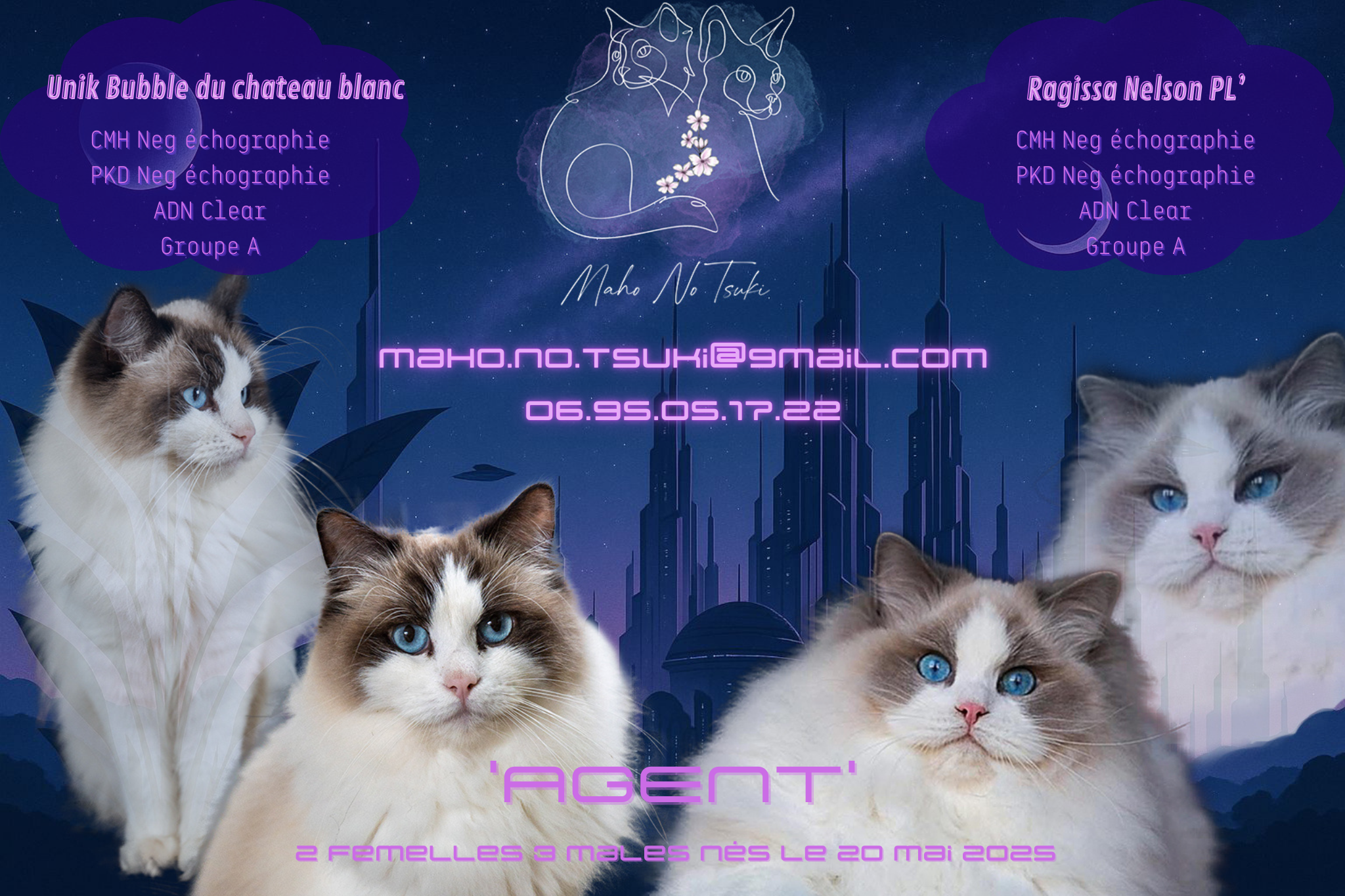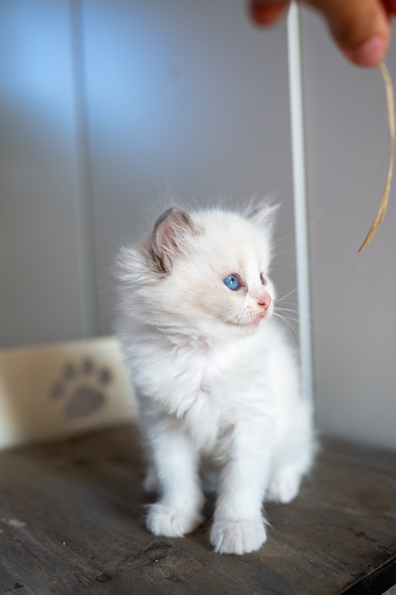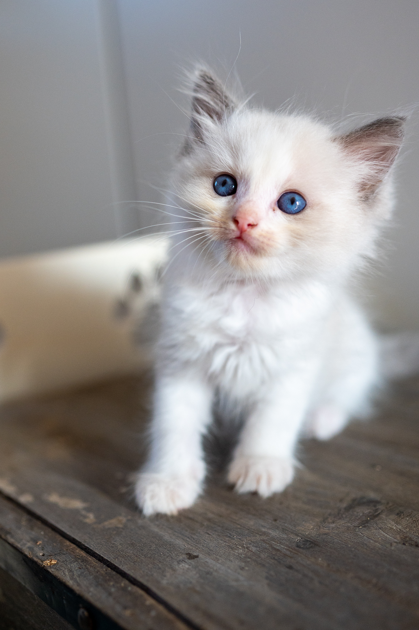 Nous avons actuellement une portée de Ragdoll. Notre belle Bubble a rencontré Nelson et donné naissance le 20 mai 2025 à 5 superbes chatons, 3 mâles et 2 femelles. Les 3 mâles sont disponibles à la réservation pour un départ fin Août / début Septembre